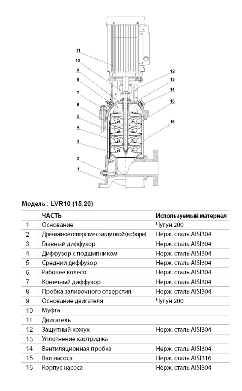 Насос LEO LVR 15-5 предназначен для перекачки невязких, негорючих, невзрывоопасных, не содержащих твердых включений и волокон жидкостей